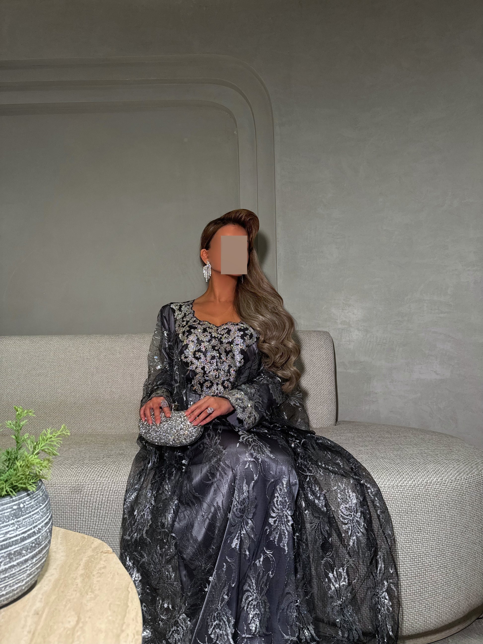 ثوب دانتيل اصلي مع تطريز بحزام داخلي