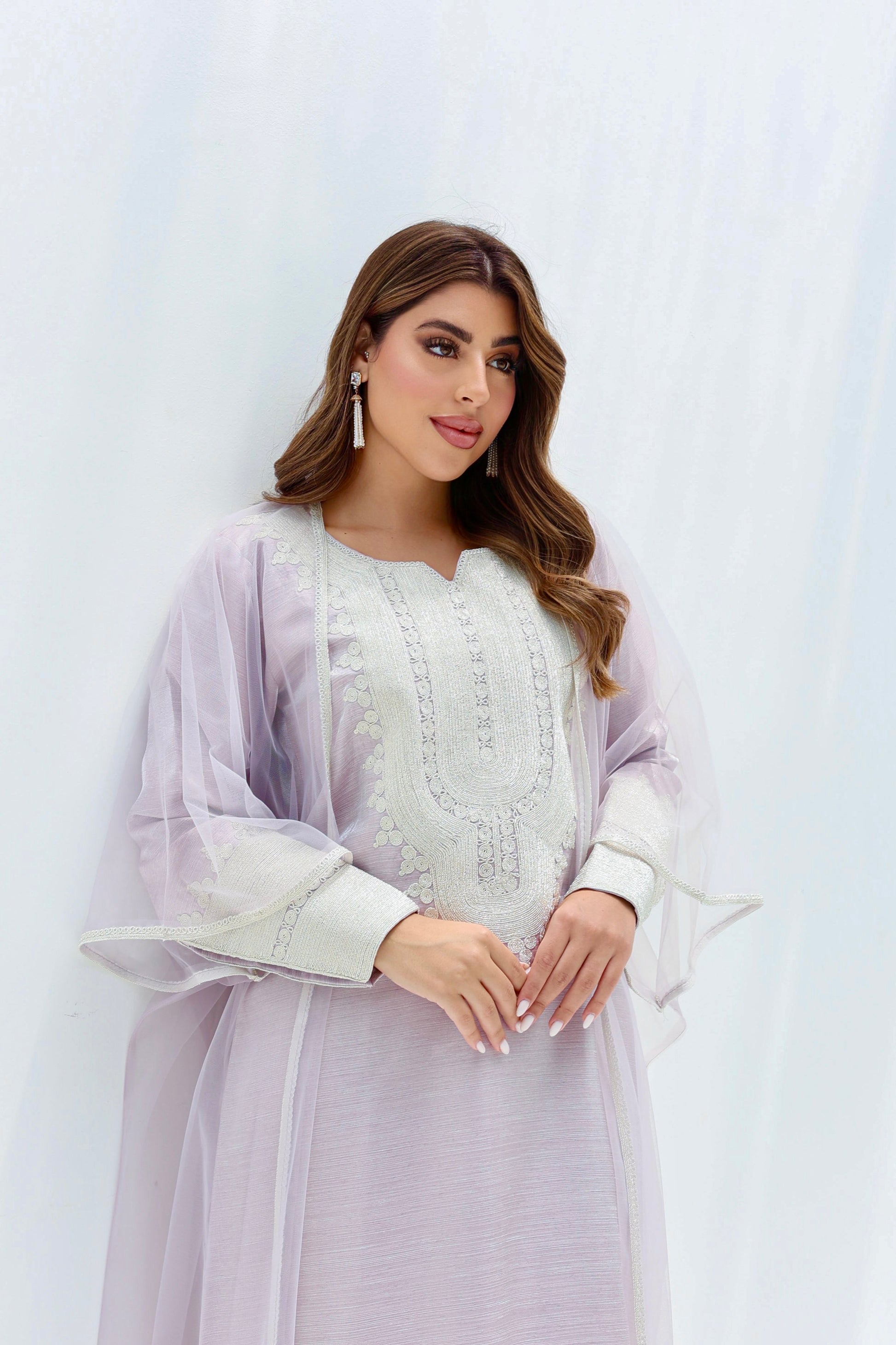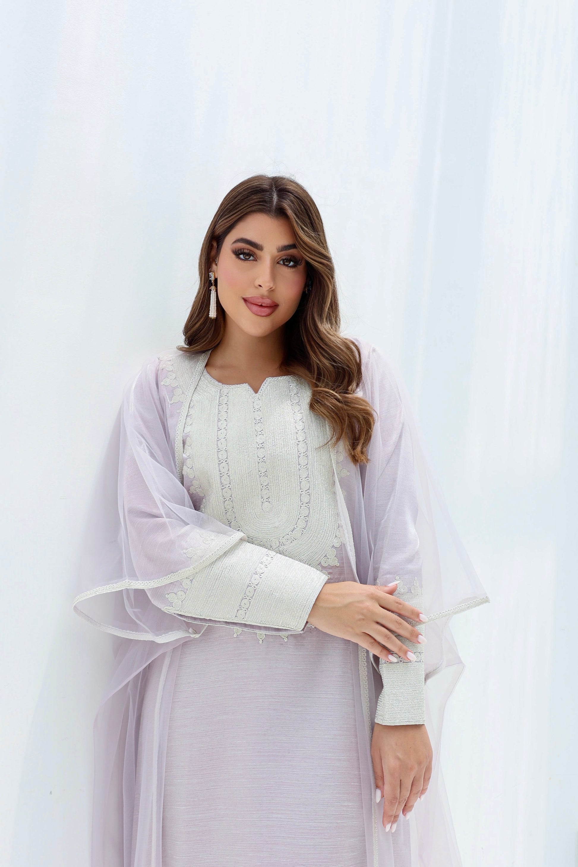 ثوب عربي مطرز مع قطعة عباية تور